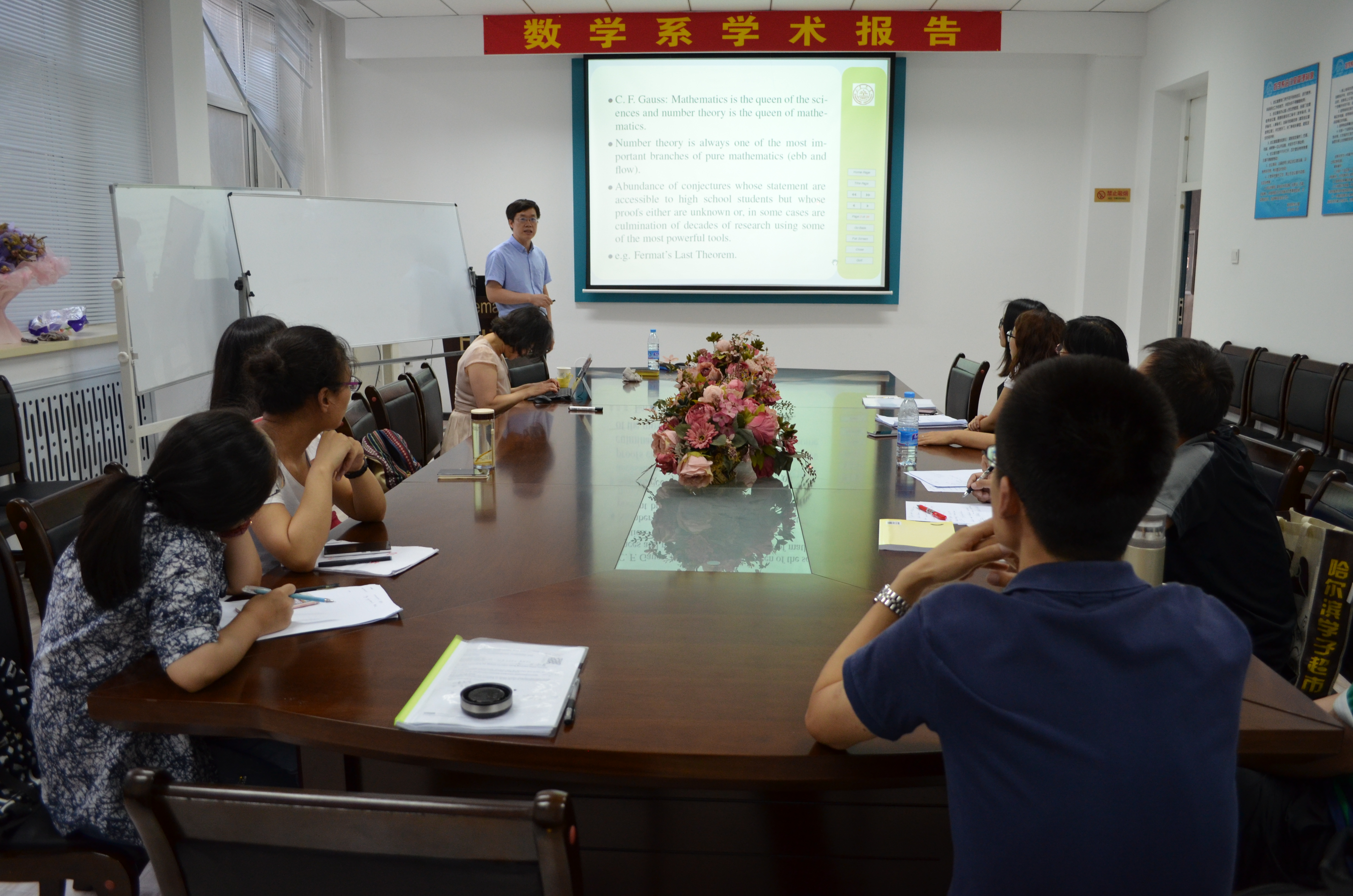 2016年6月21日和6月22日下午3:30-4:30,山东大学威廉官网中国官方网站副院长,教育部新世纪优秀人才吕广世教授在数学系会议室(格物楼503)分别做了题为《Fourier coefficients of automorphic forms for higher rank groups》《Linnik's approximation to Goldbach's conjecture, and other problems》的学术报告,报告由张毅超教授主持,数学系十余位师生听取了报告,并进行了热烈的讨论。