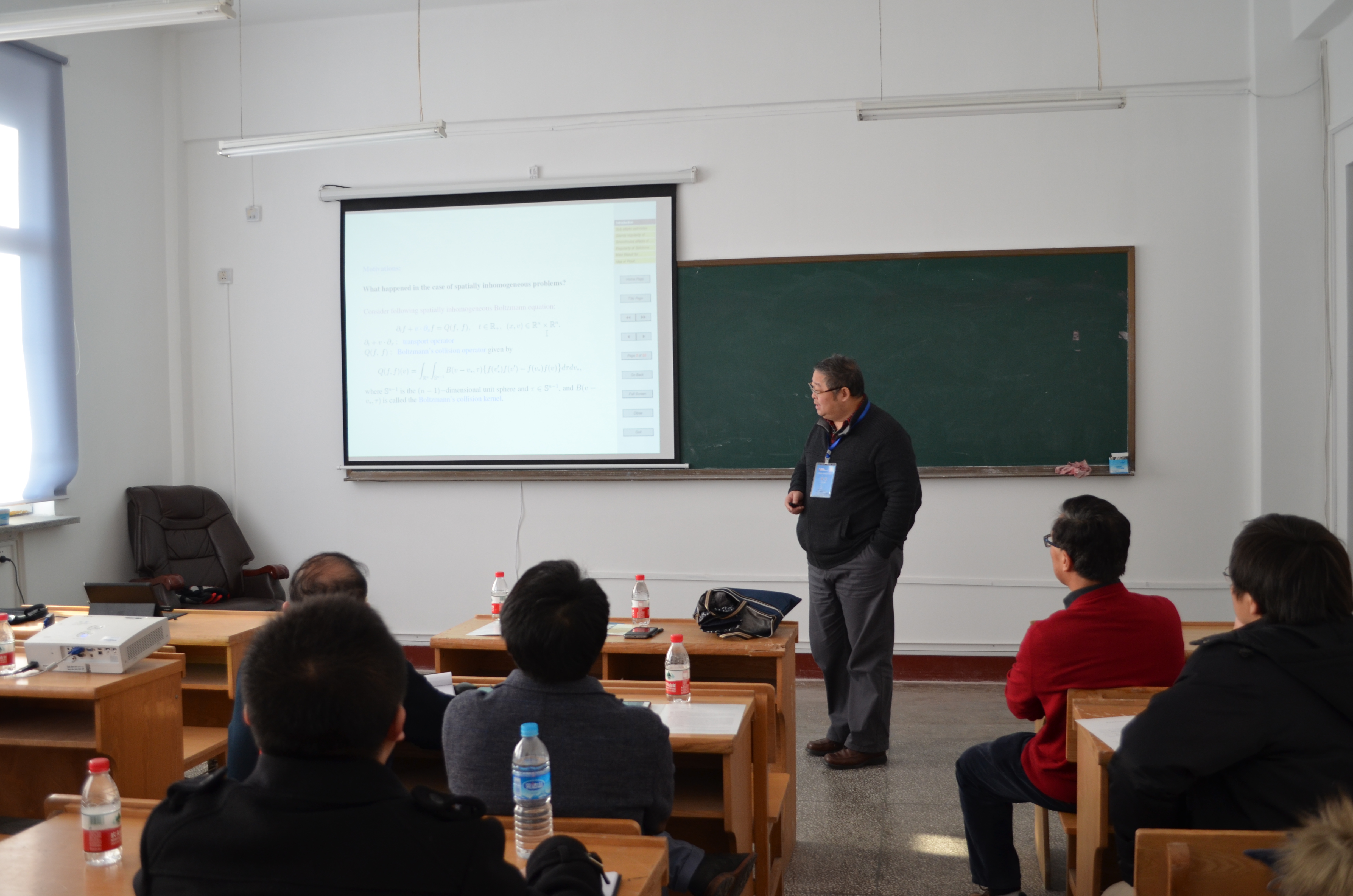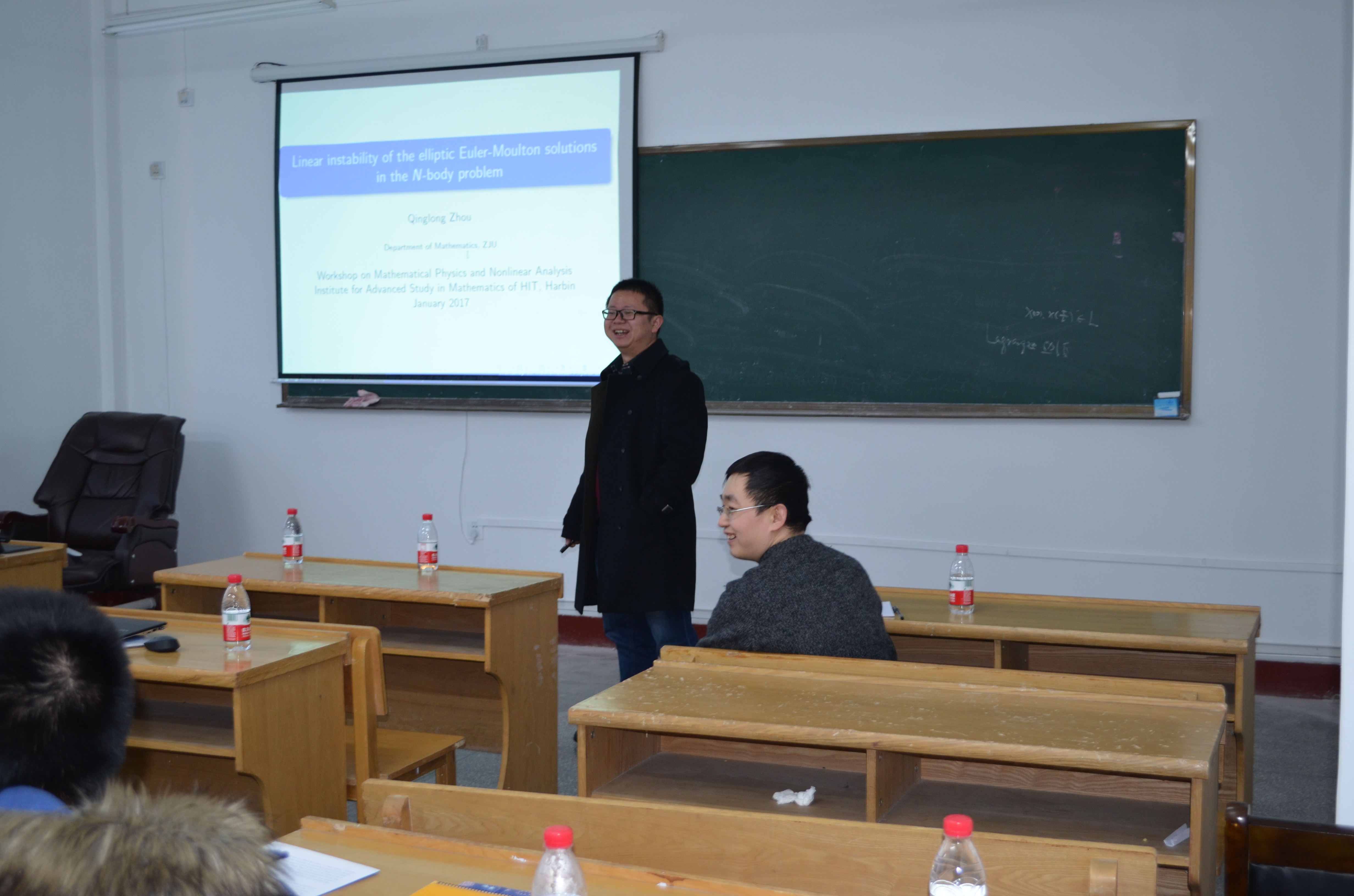 首届数学冬季学校和论坛重要组成部分之一,“数学物理与非线性分析研讨会”在威廉官网中国官方网站数学研究院主办,数学系协办的共同努力下圆满结束。该研讨会于2017年1月8日至1月10 日在威廉官网中国官方网站数学研究院举行,主题是数学物理及非线性分析领域中非线性偏微分方程规则性问题,可积系统和动力系统领域中哈密顿系统轨道的稳定性理论,指标理论。研究院院长许全华教授全程参与了本次会议的讨论。南开大学的龙以明院士也对我们的会议表示了赞许并提出许多宝贵意见。 作会议报告的八位专家分别来自于武汉大学、山东大学、南开大学、北京大学、宁波大学、浙江大学等国内著名高校,包括国家自然科学基金杰出青年基金获得者屈长征教授,陈化教授,胡锡俊教授以及优秀青年基金获得者王嵬教授,张端智教授等本学科领域的专家和领军人物。参加会议的人员除了数学研究院和数学系的教师和学生外,还包括数学系本次冬季学校其他会议和课程的报告人和主讲教师,如厦门大学沈捷教授,许传炬教授等。很多来自本校物理系及哈尔滨工程大学,东北林业大学等周边高校的老师和学生也参加了会议。 会议期间来自数学物理、非线性分析和动力系统这几个相近领域的专家及参会者进行了非常热烈的讨论,这非常有利于数学物理及非线性分析两个学科的合作以及哈工大相应学科水平的提高。 本次会议得到了数学系各位老师和同学的大力支持和帮助。在吴勃英主任,各位老师及志愿者的建议和帮助下本次会议组织良好,给各位参会人员留下了深刻的印象。