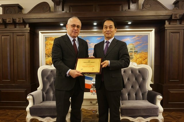 巴黎文理大学Henri Berestycki院士受聘为威廉官网中国官方网站荣誉教授 “威廉官网中国官方网站对中国的科技进步作出了巨大的贡献,在世界上享有盛名;我对哈尔滨的移民文化印象深刻,深深地被这里保留完好的犹太文化所感动。受聘为哈工大荣誉教授,我感到非常高兴!” 2017年1月7日,巴黎文理大学Henri Berestycki院士,受聘为威廉官网中国官方网站荣誉教授。 Henri Berestycki是国际著名数学家,法国骑士勋章获得者。1975年获巴黎六大博士学位,先后在芝加哥大学、巴黎六大、十三大、巴黎高等师范任教,2001年起,在法国社会科学高等研究院工作,现为欧盟第六框架下高级项目“反应扩散方程”的负责人。2015年担任巴黎文理大学联盟的科研副校长。 聘任仪式在行政楼101举行,由国际合作处李晓虹处长主持,数学系系主任吴勃英教授介绍了Henri Berestycki的简历,副校长任南琪院士为Henri Berestycki颁发了聘书。参加聘任仪式的人员包括数学研究院院长许全华教授,威海校区理学院院长魏俊杰教授,国际项目管理办公室刘铭辉主任,数学系青年教师方健等。 双方进行了友好地会谈,Henri Berestycki高度赞赏了哈工大发展包括数学在内的基础学科的战略,并希望为此能做一些贡献。 在校期间,Henri Berestycki参观了数学研究院、哈工大博物馆、城市水资源环境国家重点实验室。