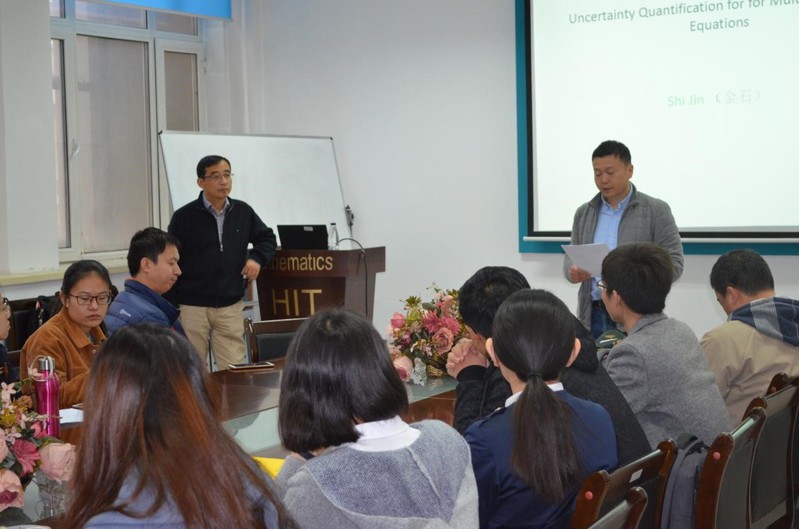 10月16日,金石教授在研讨会上做了主题为“多尺度动力学方程的不确定性量化”的报告。在报告中,金石教授详细的介绍了动力学方程的来源、解决多尺度问题的渐近方法,以及时下最热门的不确定性量化在多尺度动力学方程中的应用。金石教授的报告深入浅出,并且在报告的最后,他向数学系的师生推荐研究多尺度动力学方程的不确定性量化问题,因为这是一个非常新的学术方向,正逐渐成为研究的热门。