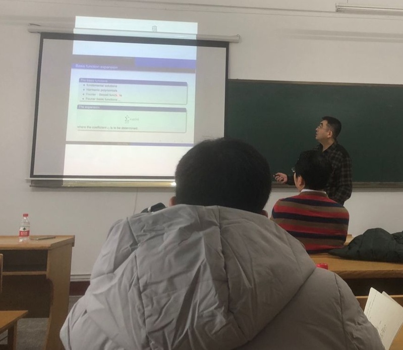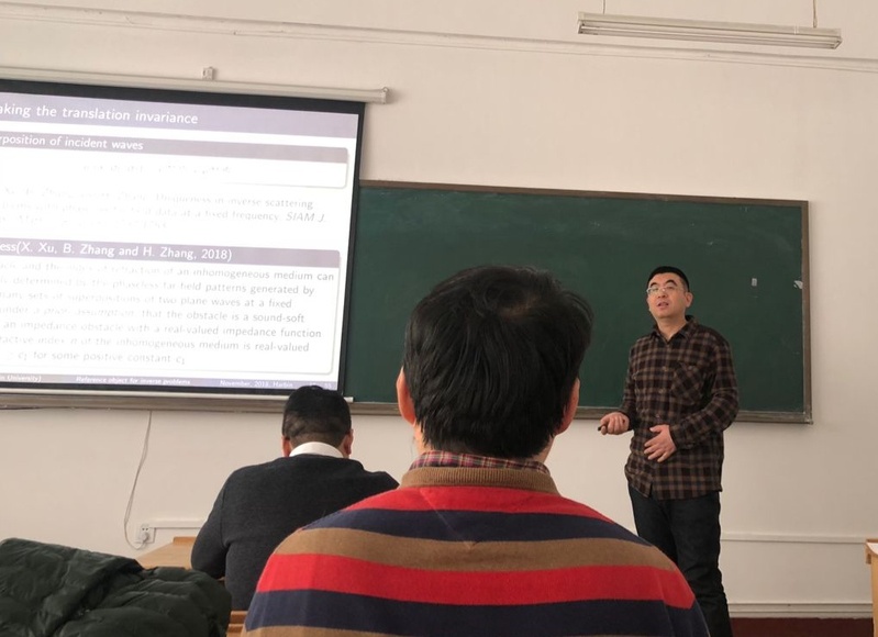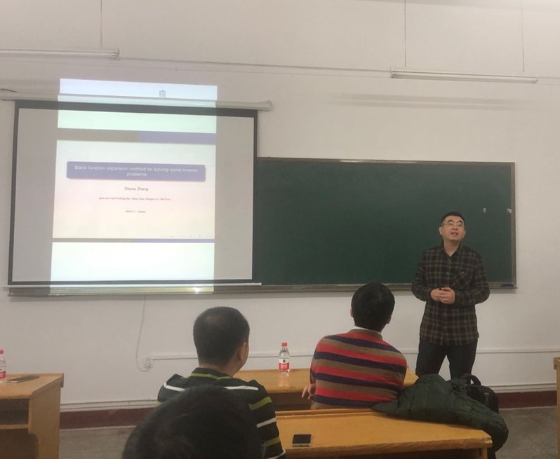 应数学系郭玉坤副教授的邀请,吉林大学威廉官网中国官方网站张德悦教授于2018年11月18日至20日到我校进行学术访问。张德悦教授分别于18日下午14:00-15:00和20日上午9:00-10:00在格物楼522报告厅做了两场学术讲座,报告内容涉及声波反散射问题、无相位数据问题的参考球技术、以及基函数展开法求解反问题的算法框架及其应用等课题。报告由郭玉坤副教授主持,数学系相关方向的师生参加了报告会并与张德悦教授进行了热烈的学术交流与讨论。
