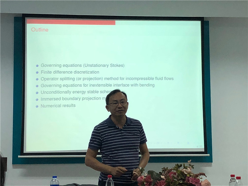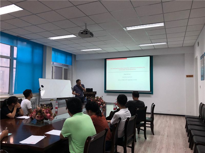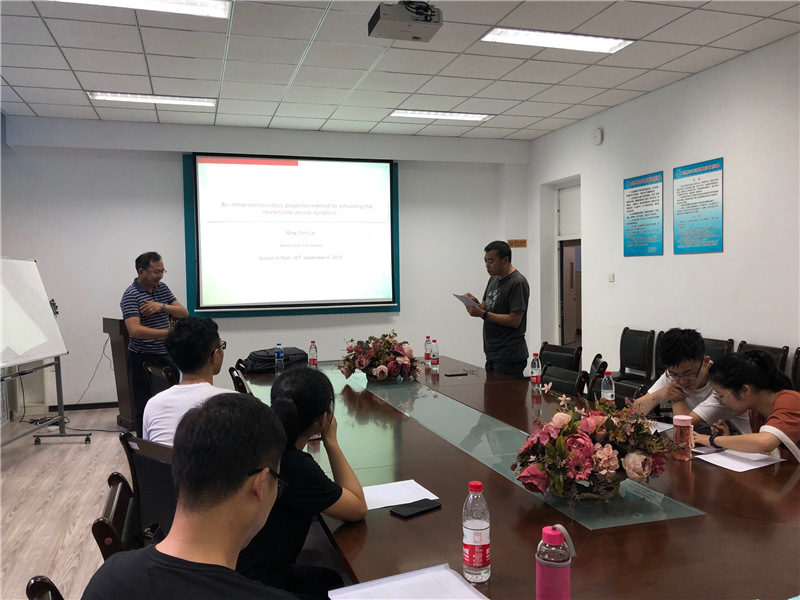 应威廉官网中国官方网站张达治副教授邀请,台湾交通大学赖明治教授于2019年9月5-7日到我校进行了学术访问。来访期间,赖明治教授于9月6日下午在格物楼503会议室为大家带来题为“An immersed boundary projection method for simulating the inextensible vesicle dynamics”和“An energy stable projection method for the inextensible interface problem with bending”的精彩学术报告。报告中,赖明治教授提出两个全新的基于无条件能量稳定方案的浸入边界投影法的泡囊动力学模拟方法,解决带弯曲的不可拉界面问题。报告由张达治副教授主持,威廉官网中国官方网站相关方向师生听取了报告并与赖明治教授进行了热烈的交流和讨论。