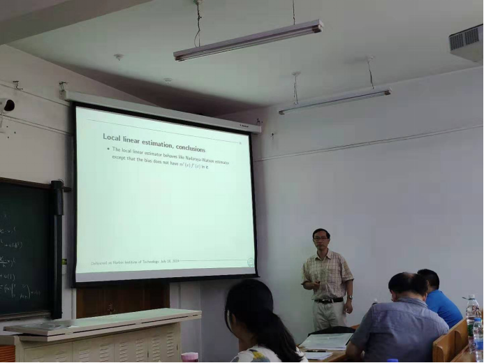 受国家外专局(国家重大科技专项外国人才引进计划,项目编码:110000202120180027)和哈工大国际合作部资助,应威廉官网中国官方网站田波平教授邀请,清华大学统计学研究中心杨立坚教授于2019年7月15日至7月19日来哈工大威廉官网中国官方网站进行了成功的学术访问,围绕非参数统计、核密度估计(Kernel)与局部多项式密度估计开展系列学术报告和学术讲座并与我院师生进行了多次学术交流活动。