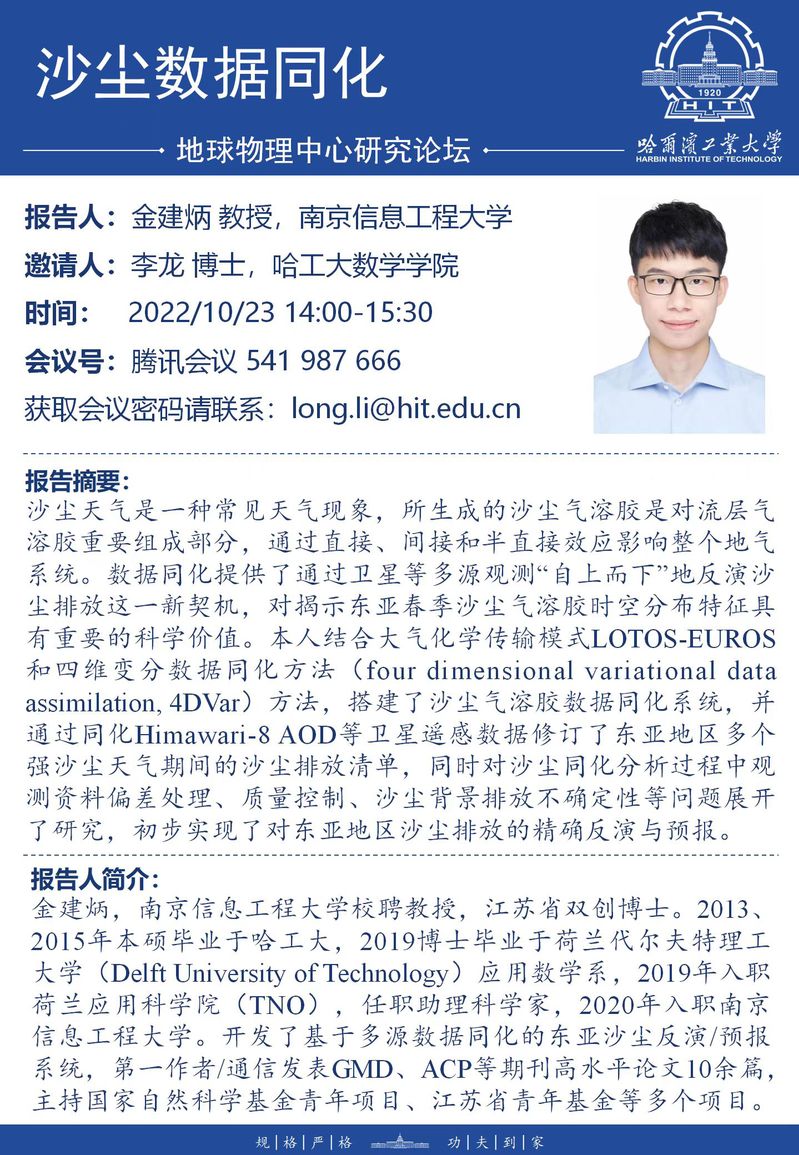 南京信息工程大学金建炳教授关于沙尘数据同化的学术报告通知